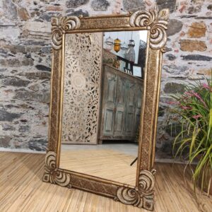 Troverai una vasta gamma di specchi etnici: specchi indiani con cornici dipinte a mano, specchi indonesiani dalle forme armoniose e dettagli raffinati, oltre a specchi antichi che custodiscono il fascino del tempo.Versioni grandi e scenografiche si affiancano a soluzioni più contenute ma altrettanto ricercate. Le cornici in legno lavorato raccontano di artigianato antico e di tradizioni lontane, talvolta impreziosite da intarsi o decorazioni floreali che donano personalità e calore.