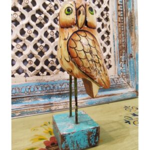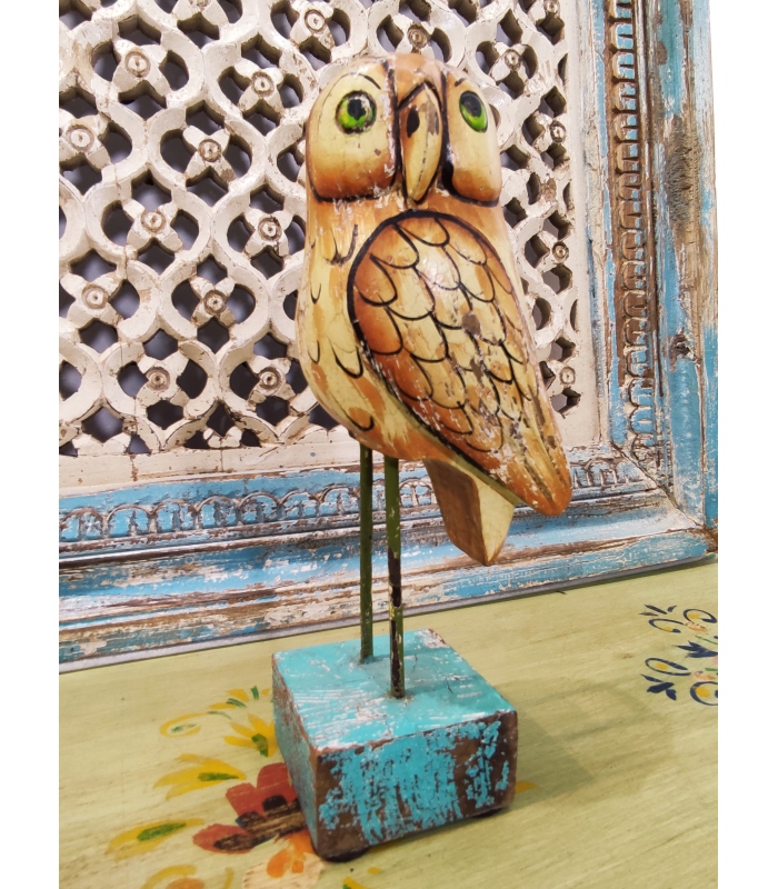 DECORAZIONE A FORMA DI GUFO IN LEGNO, INTAGLIATA E DECORATA A MANO. DISPONIBILE IN 3 COLORI: MARRONE, ROSA E PANNA, ARANCIONE