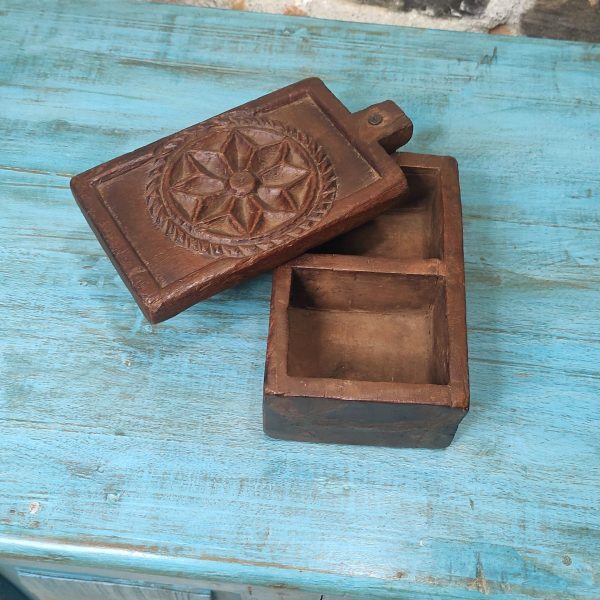 Questo portaspezie in legno proviene dall’India. E’ ricavato da un unico pezzo di legno scavato e lavorato a mano.