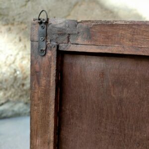Il fregio è recuperato dalla cornice di una porta o di una finestra e si caratterizza per la decorazione floreale incisa nel legno. Questo particolare riutilizzo di antichi elementi in legno, non solo rende questi oggetti unici ma offre la possibilità di custodire un frammento della storia e cultura del Rajasthan.