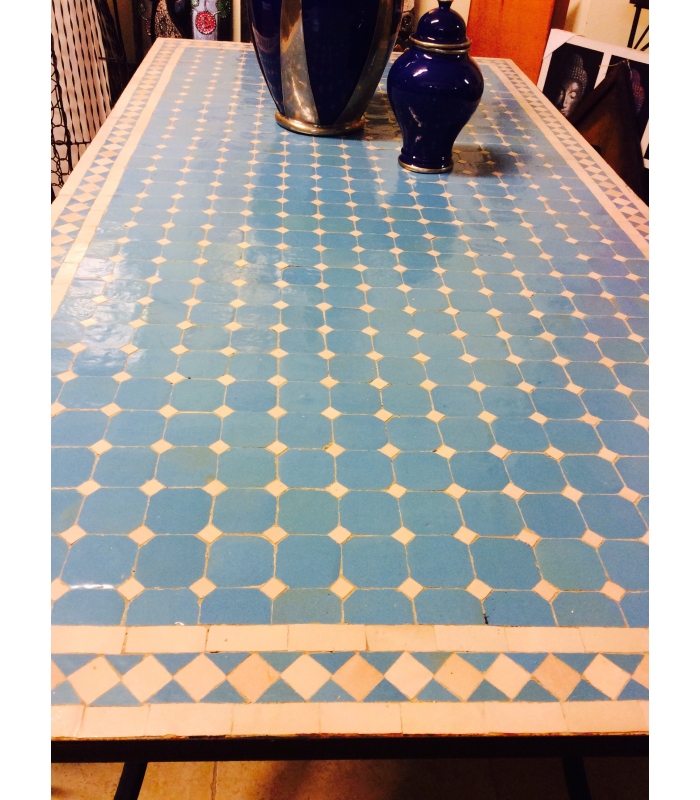 TAVOLO A MOSAICO ZELLIJE BIANCO E TURCHESE