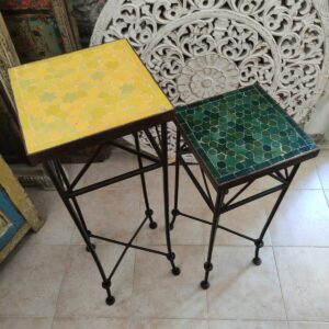 Trespolo marocchino con piano realizzato con la tecnica Zellige. Supporto in ferro lavorato a mano.